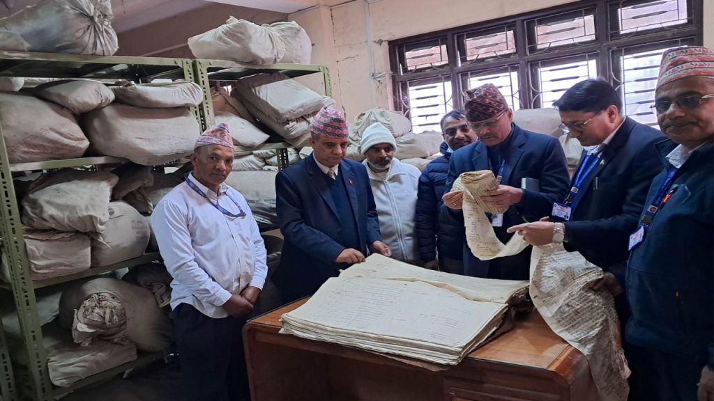 काठमाडौँ । भूमि व्यवस्था तथा गरिबी निवारण मन्त्रालयका सचिव डा. दामोदर रेग्मीले डिल्लीबजार भूमिसुधार तथा मालपोत कार्यालयको दैनिक सेवाप्रवाह तथा अभिलेख व्यवस्थापनबारे आकस्मिक निरीक्षण गरी जानकारी लिनुभएको छ ।